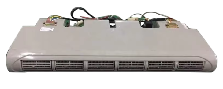 cooling capacity of 8 kW (27,297.13 BTU/h or 6,878.76 Kcal/h), making it suitable for minibuses carrying 9 to 14 passengers. It delivers an airflow rate of 1500 m³/h, ensuring consistent and efficient air circulation inside the vehicle. The system operates on 12 V DC or 24 V DC, with a maximum current of 47 A / 25 A, depending on the voltage.